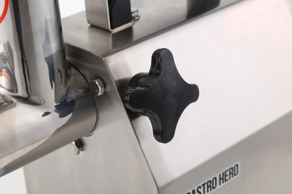 Mit dem Fleischwolf 120 kg/h bieten wir Ihnen ein zuverlässiges und multifunktionales Produkt für Ihre Profi-Küche. Ob für Hackfleisch, Pasteten oder Brotaufstriche - der Fleischwolf ist für den Einsatz von kleineren Mengen universell einsetzbar. Diese Vorteile sowie das robuste und moderne Design machen den Fleischwolf 120 kg/h zu einem unerlässlichen Küchenhelfer für Sie!