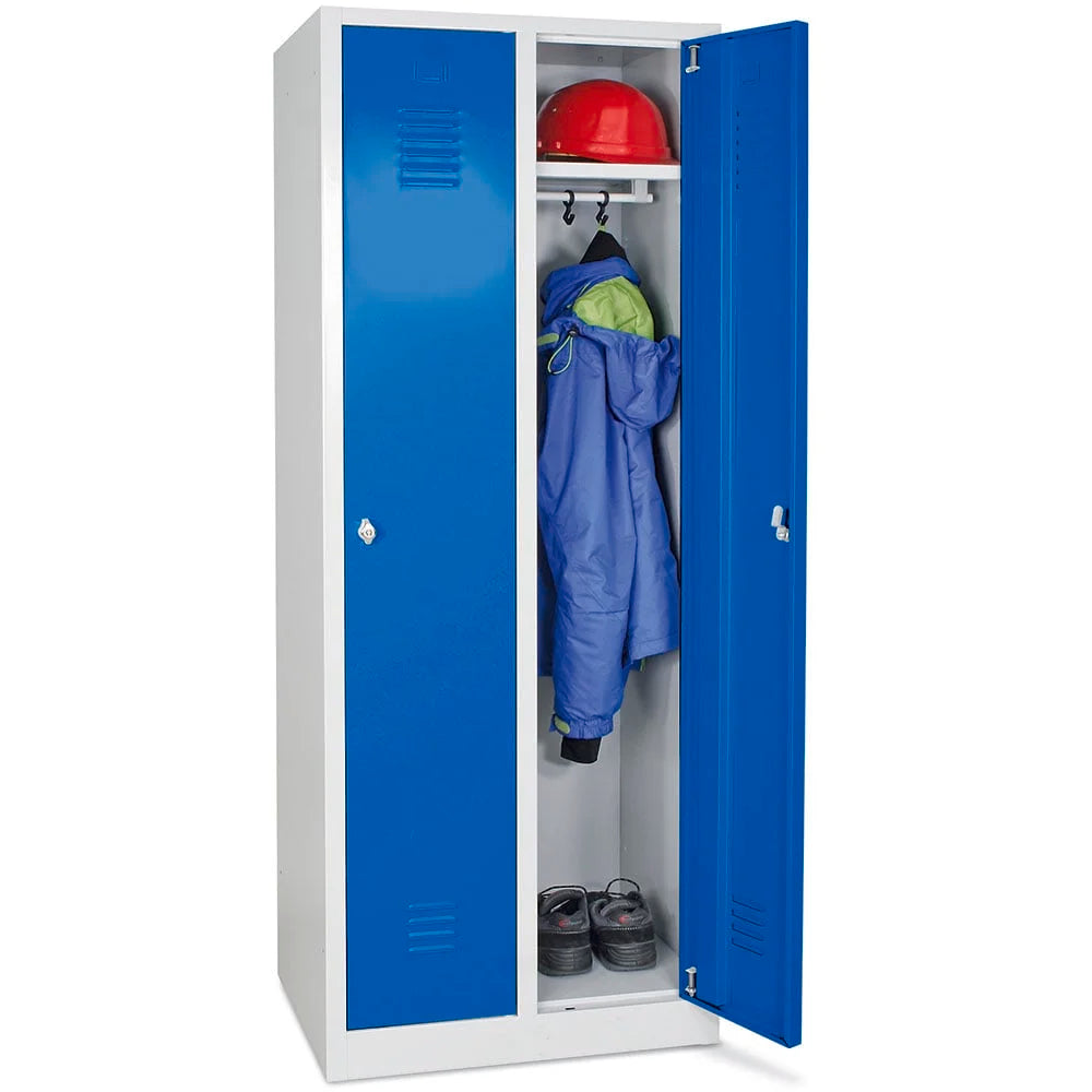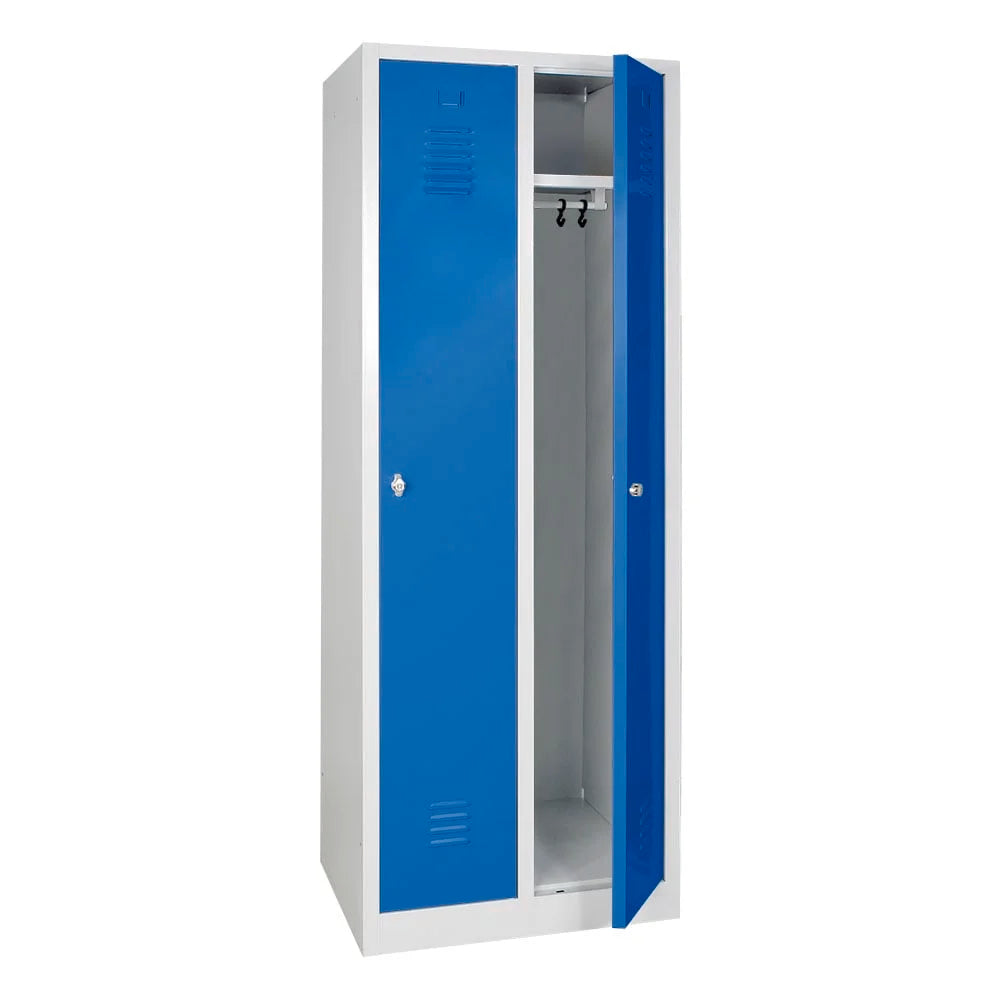 Garderobenspind Profi mit Drehriegelverschluss, 2 Abteile, BxTxH 600x500x1800 mm, Türen blau