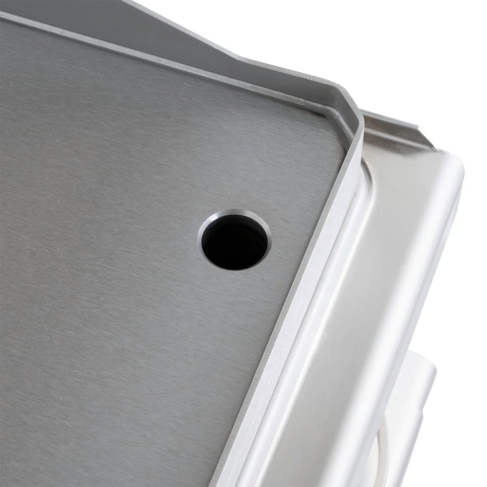 Informationen zur Kochfläche:- Die glatte Grillplatte ist 15 mm dick und leicht geneigt für ein einfaches Abfließen der Fettreste