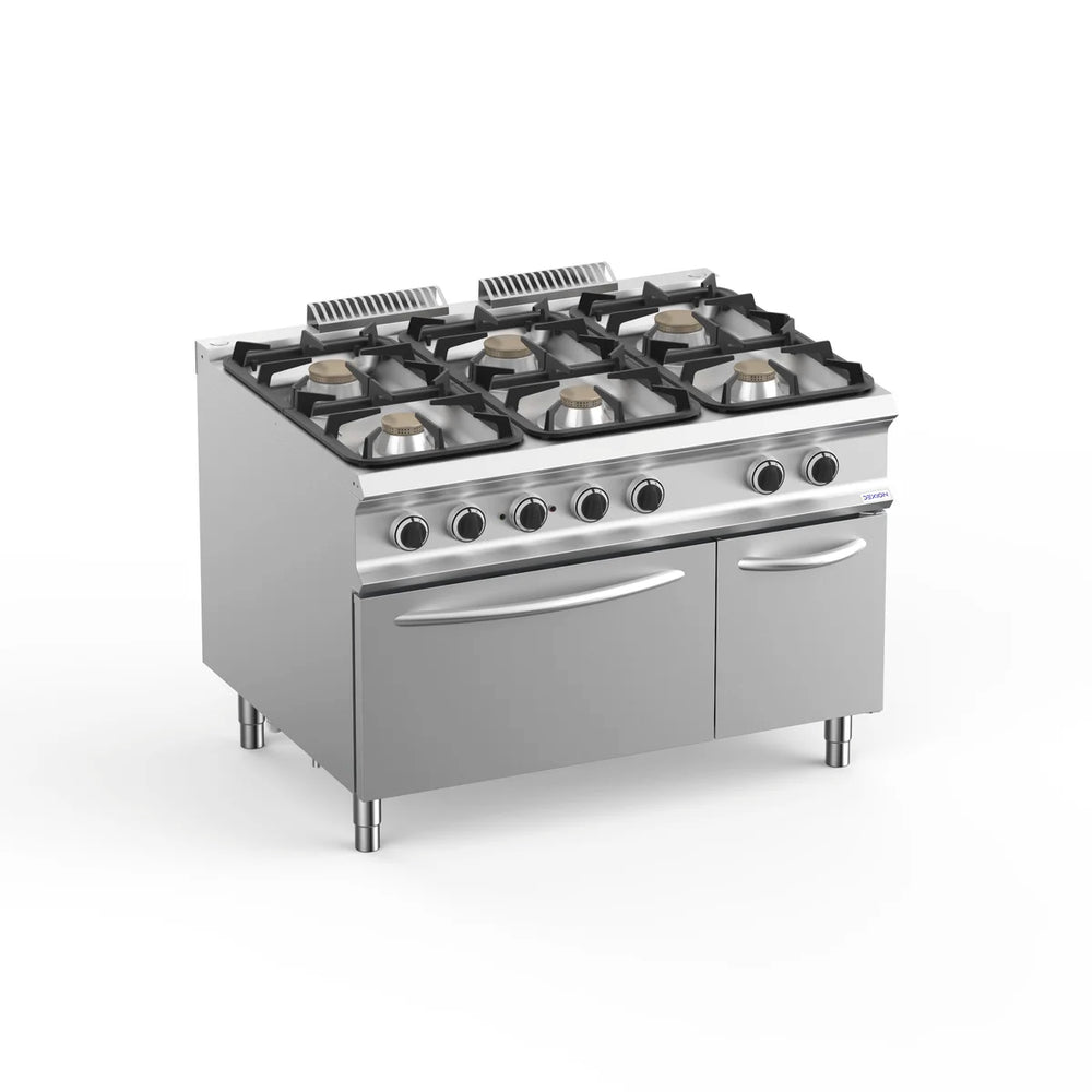 - Gasherd mit 6 Flammen und integriertem Elektrobackofen
