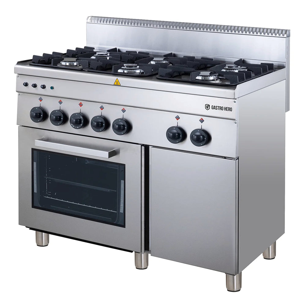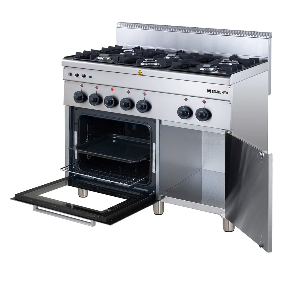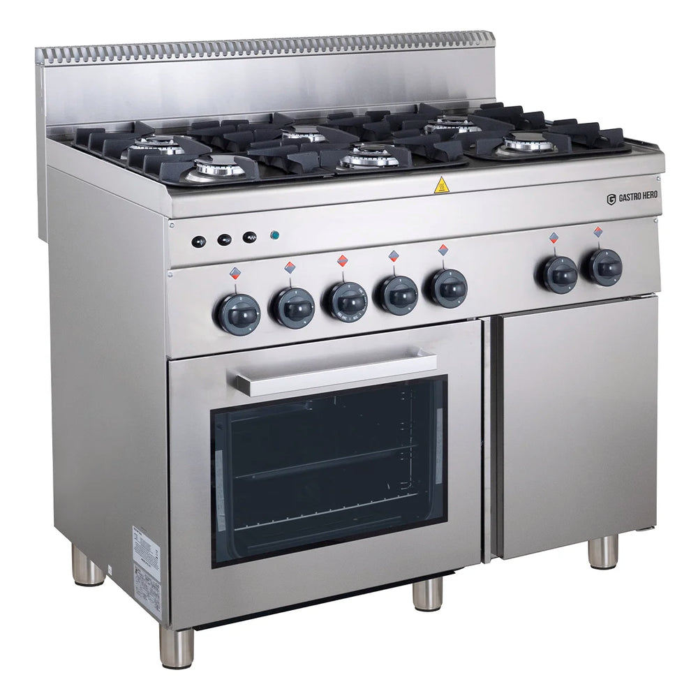 - Gasherd mit 6 Kochfeldern und Gasbackofen