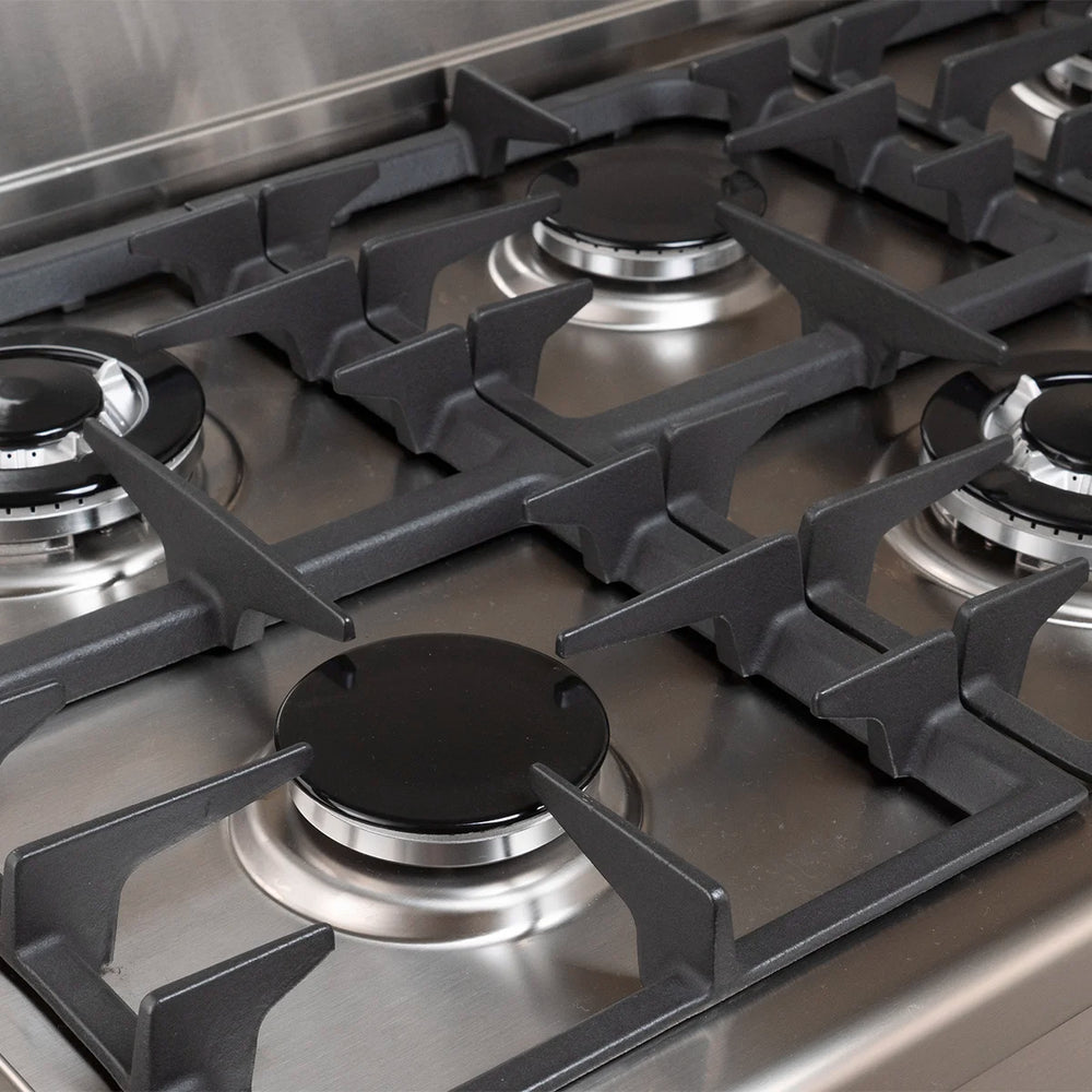 - Gasherd mit 6 Flammen und Gasbackofen mit Elektrogrill