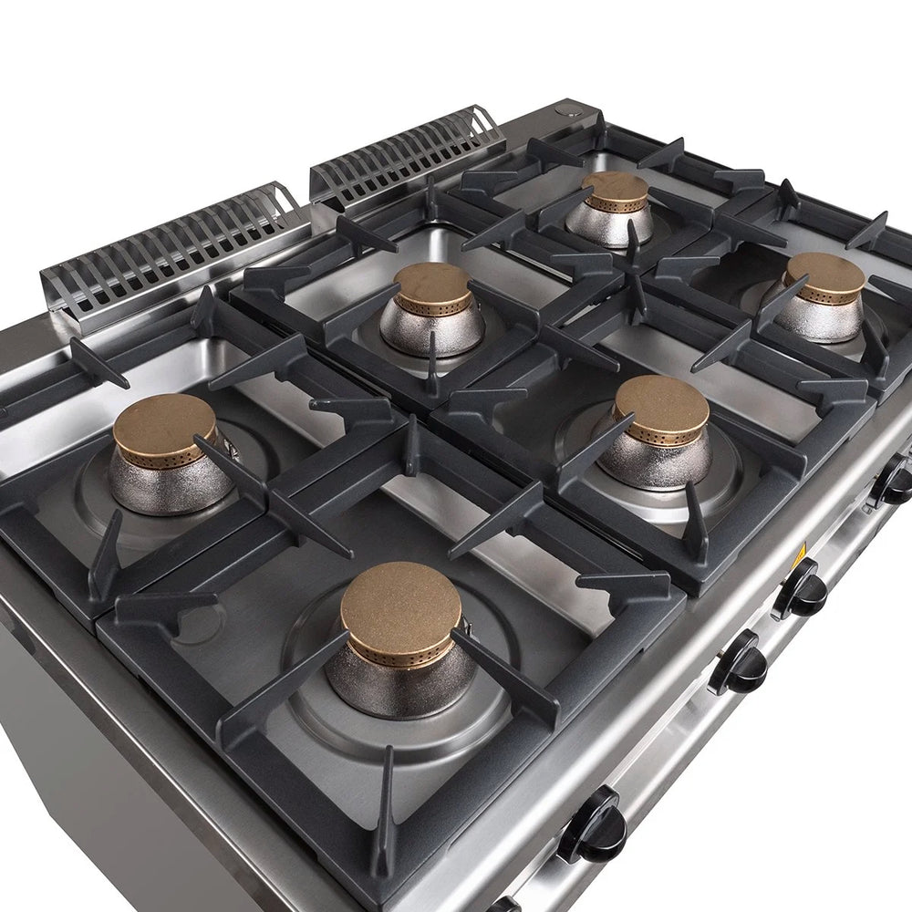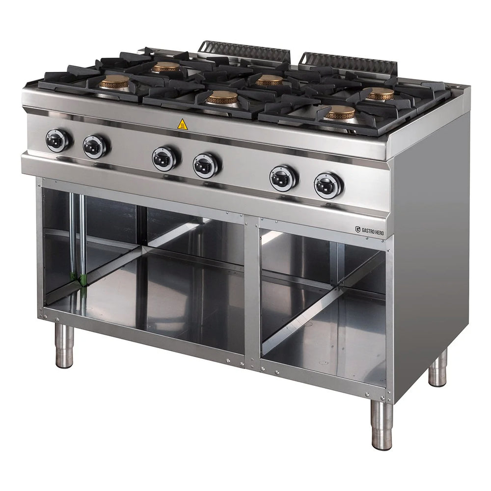 - Gasherd mit 6 Flammen und offenem Unterbau