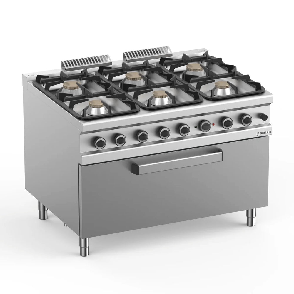 - Gasherd mit 6 Kochfelder und Grill-Gasbackofen