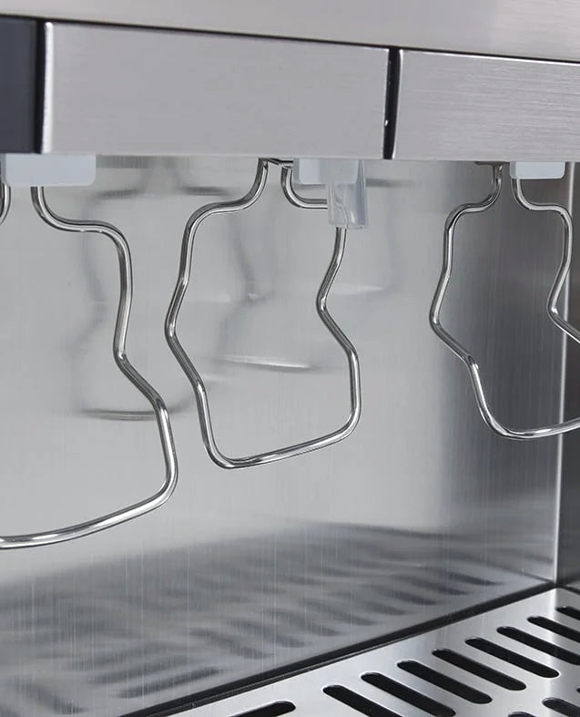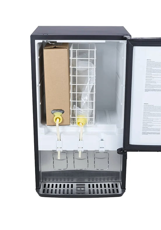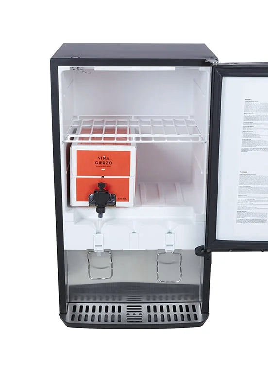 Keine ungeduldigen Gäste mehr, die wartend von einem Fuß auf den anderen stapfen! Der Bag in Box Dispenser hält gleichzeitig drei Getränke zum Zapfen bereit. Saft, Wasser, Milch und Wein sowie weitere trinkfertige Produkte stehen gekühlt für Gäste und Besucher bereit. Einfach den Zapfhahn öffnen und schon läuft die Erfrischung aus dem Bag in Box Kühler frisch und hygienisch ins Glas. Selbstbedienung und Getränkevorhaltung sparen Zeit und Gänge, ein Schloss sorgt für Sicherheit. Abstandshalter und optional bestellbare Gitter sorgen für die flexible Nutzung verschiedenster Getränkepackungen und Trinkkartons im Bag in Box Dispenser mit Edelstahl Elementen. Bei dem Bag in Box Dispenser Kühlschrank handelt es sich um ein Gewerbekühlgerät, das nur gewerblich eingesetzt werden darf.
