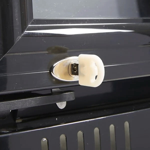 - Glasflügeltür (zweifach verglast mit Argon Gas) und selbstschließend