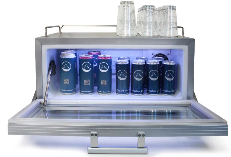 - Kapazität Dosen: 19 Dosen 0,5 l, 19 Dosen 0,33 l, 23 Dosen 0,33 l slim, 34 Dosen 0,25 l