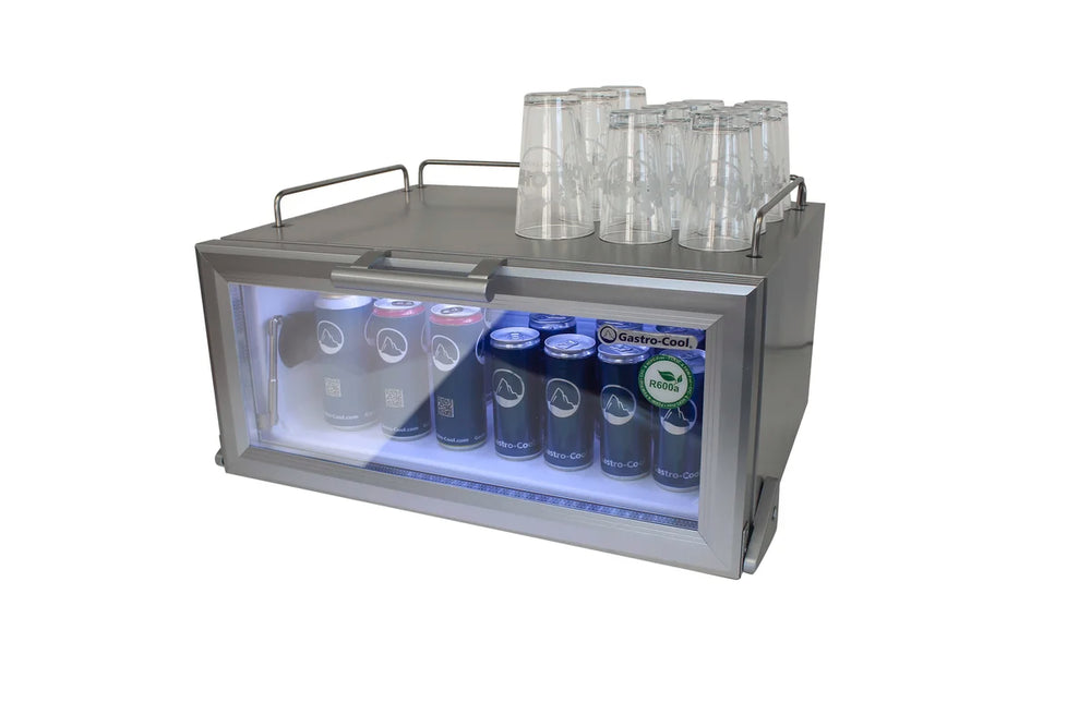 Die Anzahl der Spontaneinkäufe am POP (Point of Purchase) soll sich nicht nur erhöhen, sondern dem Durstigen möchte sich vielleicht auch eine neue Getränkemarke gebürtig präsentieren? Dieser kleine Getränkekühlschrank in Silber setzt Getränke glänzend in Szene. Spontane Impulskäufe steigen an, wenn sich der extra flache Kühlschrank mit Glastür platzsparend am Ort der Zahlung platzieren darf. Natürlich kann der flache Getränkekühlschrank nicht nur im Lebensmitteleinzelhandel zum Einsatz kommen, sondern auch im Thekenbereich von Bars und Restaurants oder im Kassenbereich von Tankstellen oder Trinkhallen. Platz spart auch die Ablagemöglichkeit auf dem stabilen Korpus des Kühlschranks und dient als Ablagefläche für eine kleine Kasse, Tassen, Gläser oder Flaschenöffner. Der Kühlschrank mit Glastür ist auch in komplett Schwarz und in Schwarz/Weiß erhältlich. Bei Fragen stehen wir Ihnen gerne mit Rat und Tat zur Seite. Kontaktieren Sie uns! Bei dem extra flachen Kühlschrank für den Impulskauf handelt es sich um ein Gewerbekühlgerät, das nur gewerblich eingesetzt werden darf.