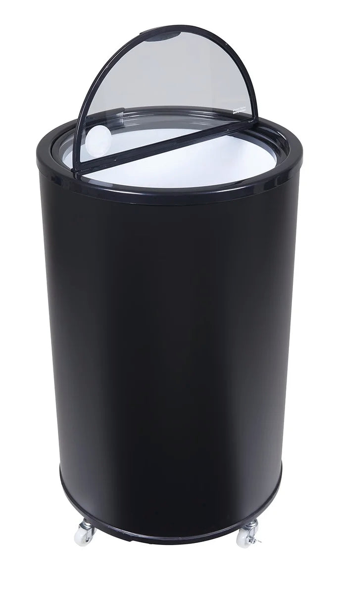 Gastro-Cool PT40 Party-Cooler / Kühltonne 40 Liter mit Glasdeckel schwarz, auf Rollen