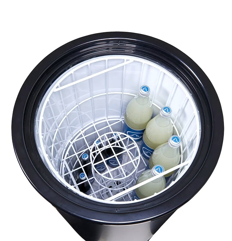 Die Form dieser KühlTonne lässt an einen Energy Drink denken. Und so ist es kaum verwunderlich, dass Getränkehersteller die Kühldose liebend gern als Werbekühlschrank einsetzen. Nachweislich werden mit dem länglich-runden Getränkekühler die Impulskäufe gesteigert. Die Getränke sind durch den transparenten Deckel sichtbar, ein flexibler Korb schafft Ordnung im Party-Cooler Innenleben. Der energievolle Getränkekühler steht auf vier Mobilitätsrädern, welche den Dosenkühlschrank flexibel machen. Der Transport ist damit erleichtert und ein schneller Ortswechsel, z.B. auf Events, jederzeit möglich. Die KühlTonne ist auch für 45 und 85 Liter erhältlich. Bei dem Party-Cooler handelt es sich um ein Gewerbekühlgerät, das nur gewerblich eingesetzt werden darf.