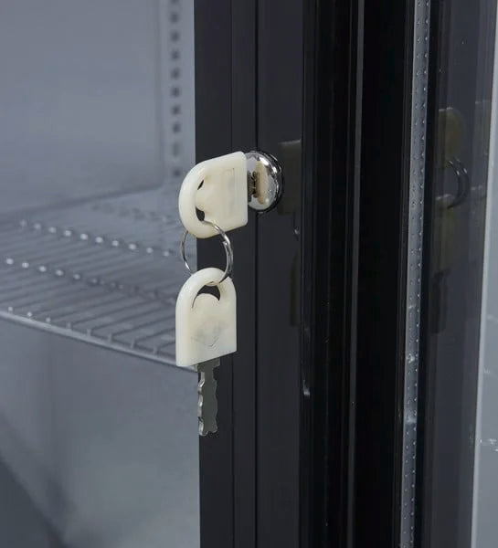 Dieser Untertheken Kühlschrank schenkt Freiheit! Die Freiheit, Getränke unter der Theke - klein oder groß, schmal oder breit - effizient zu lagern und zu kühlen. Und die Freiheit, sich bei der Arbeit mit den Getränken uneingeschränkt hin- und herzubewegen. Denn der Flaschenkühlschrank mit Schiebetür braucht von Natur aus nur wenig Stellfläche und seine Glastür benötigt als Schiebetür keinen zusätzlichen Raum beim Öffnen und Schließen! So wird jeder Zentimeter genutzt, auch im 200-Liter-Volumen-Inneren, das mit Flaschen und Dosen verschiedener Größen befüllt werden kann. Beleuchtung und Umluftkühlung gehören zu den weiteren Annehmlichkeiten und machen den Gastro Umluft Kühlschrank komplett. Der Umluft Kühlschrank in Schwarz ist auch mit Flügeltür erhältlich. Bei dem Untertheken Kühlschrank mit Schiebetür handelt es sich um ein Gewerbekühlgerät, das nur gewerblich eingesetzt werden darf.