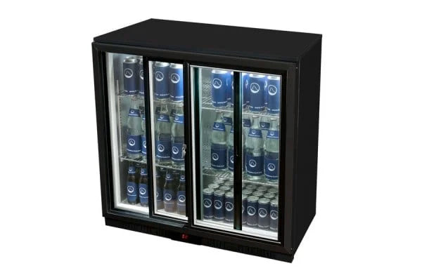 Gastro-Cool UC200 Barkühlschrank 208 Liter Schiebetüren schwarz, LED, unterbaufähig
