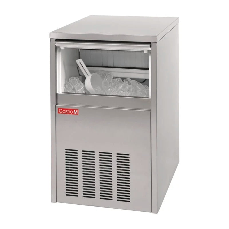 Die professionelle, in Europa hergestellte Eiswürfelmaschine von Gastro M ist von zuverlässiger Spitzenqualität. Ganz aus Edelstahl und ausgestattet mit einem kupfernem Kondensator. Luftgekühlt und mit dem bekannten Spritzsystem. Wird komplett mit Anschluss- und Abfuhrschlauch sowie Eisschaufel geliefert.