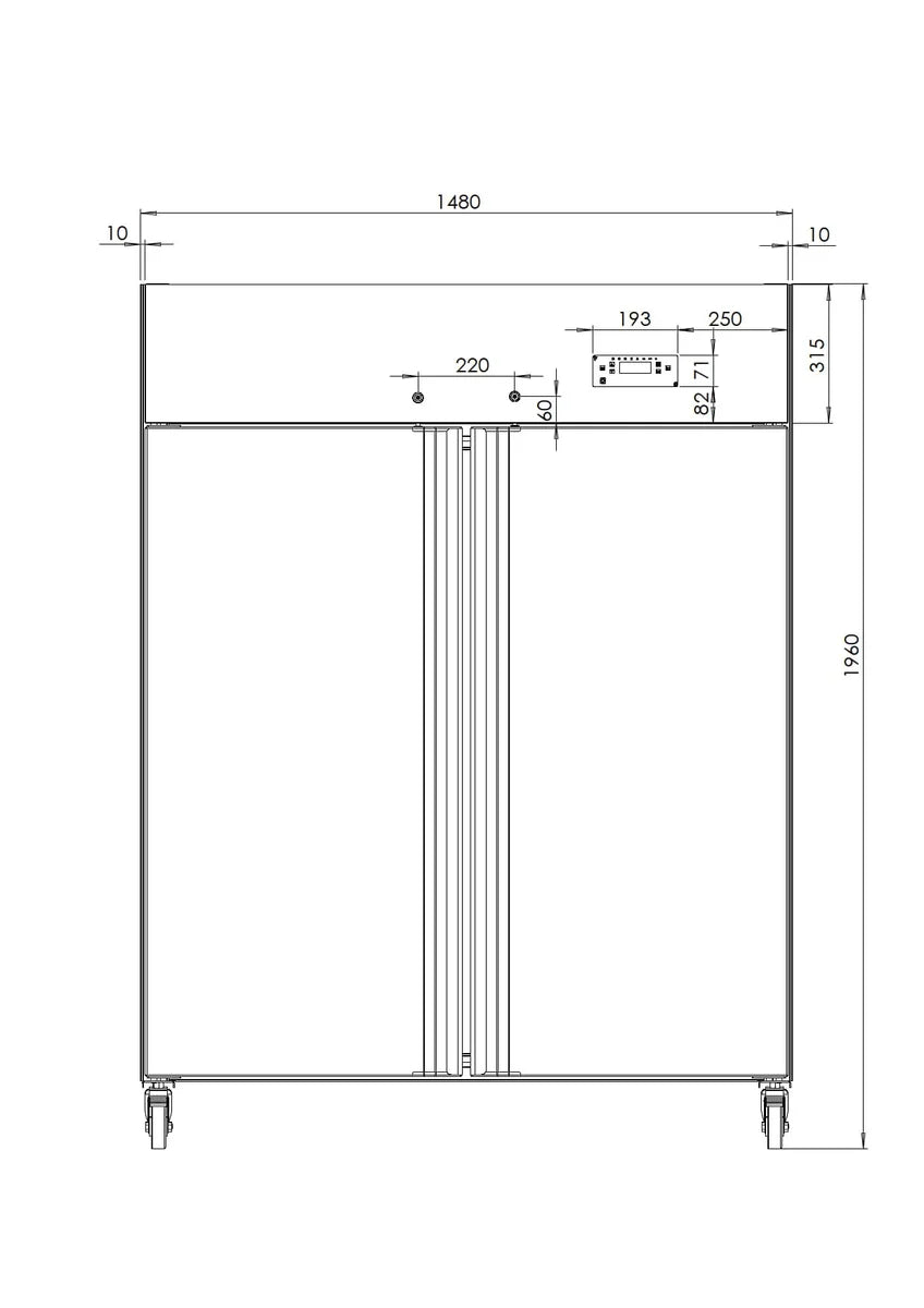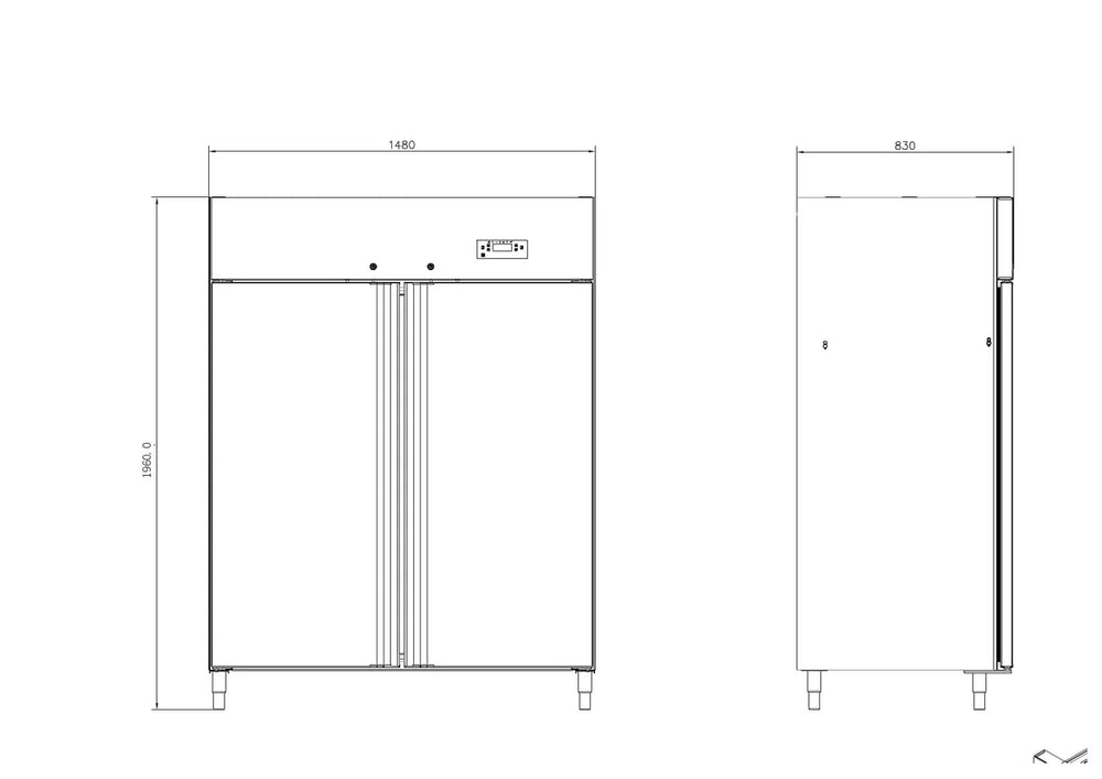 Gastronomie Kühlschrank ECO 1400 GN 2/1 Monoblock, 1350 Liter Kühlraumvolumen, 6 verstellbare Einlegeböden, Robuste Bauweise, Edelstahl