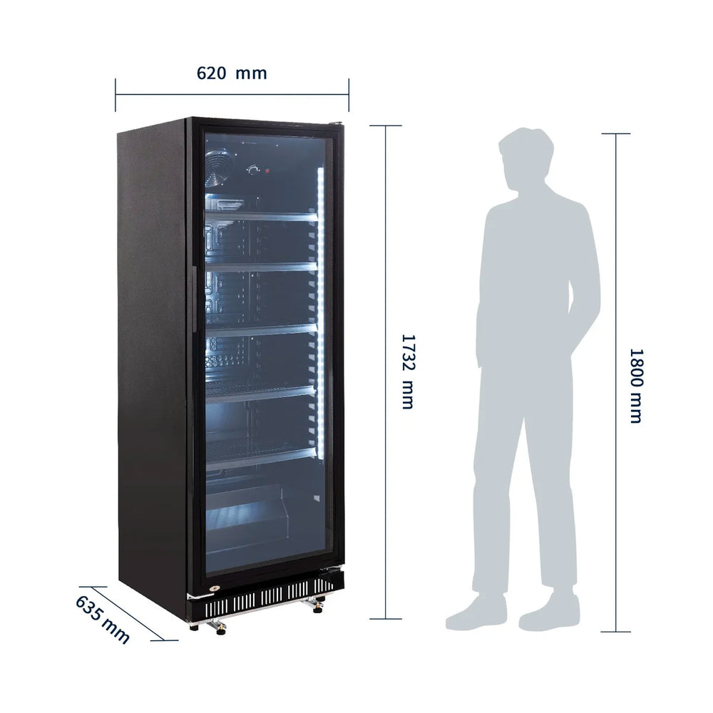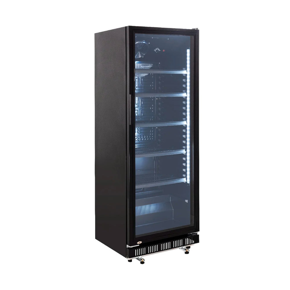 Getränkekühlschrank GK-360BB, 360 Liter Kühlraumvolumen, 4 verstellbare Einlegeböden, Innenbeleuchtung, Abschließbar, Schwarz