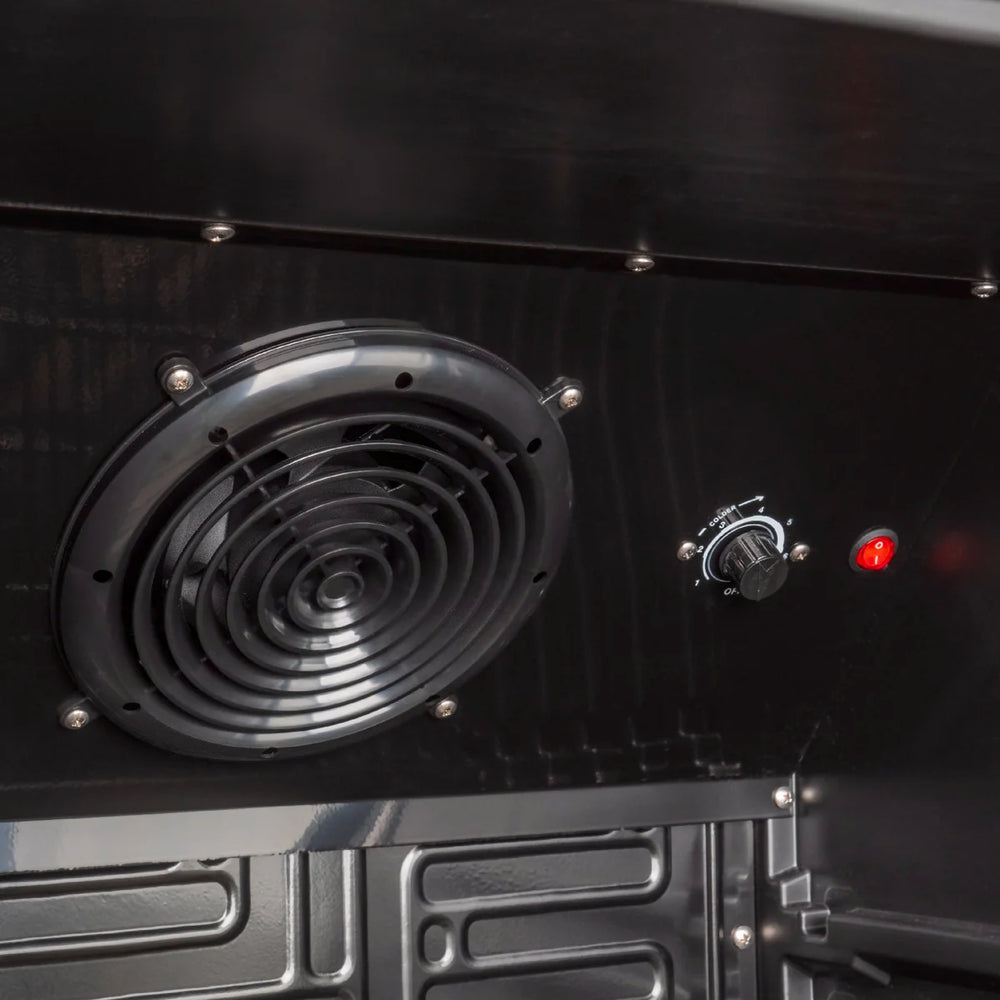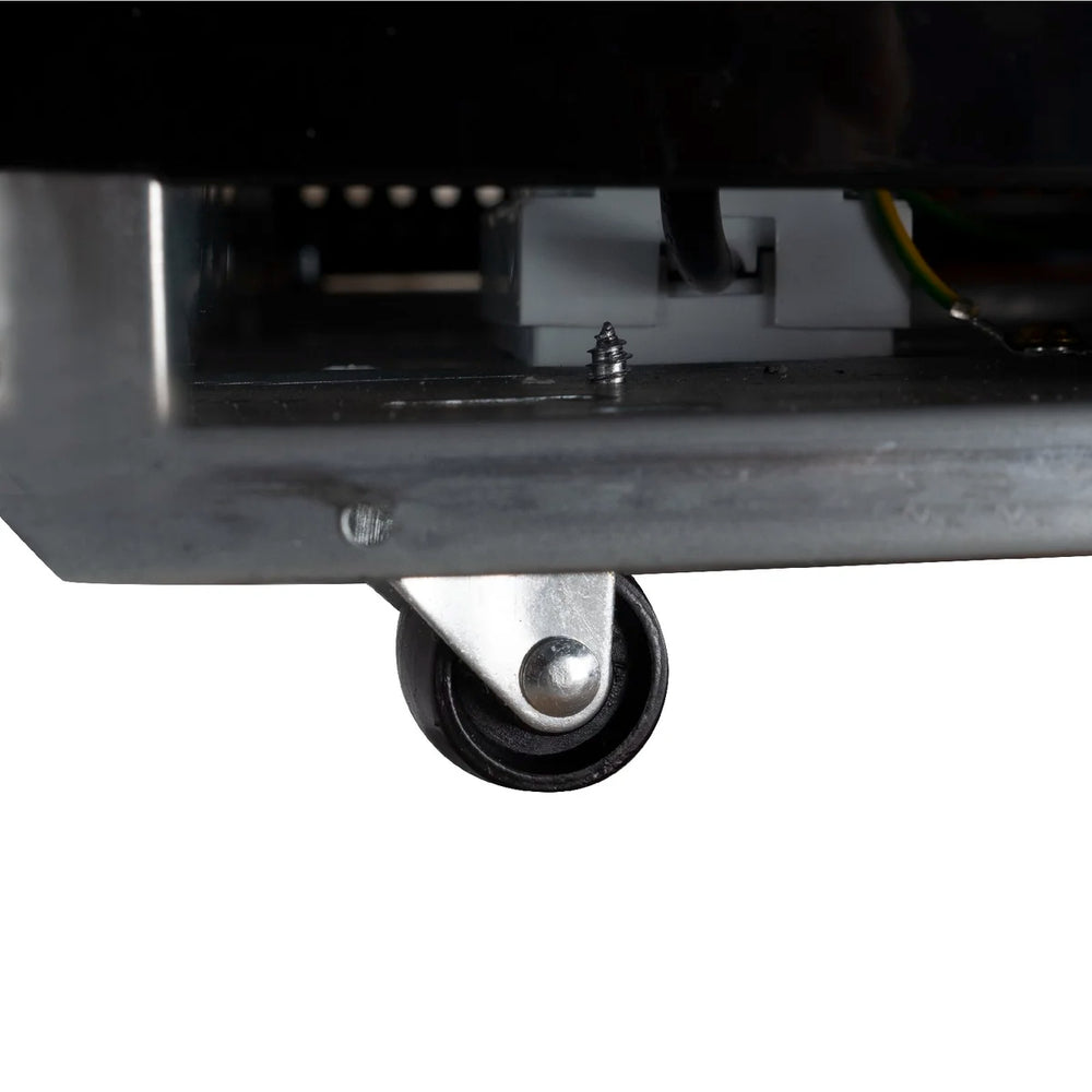 - mit selbstschließender Isolierglastür im schwarzen Metallrahmen