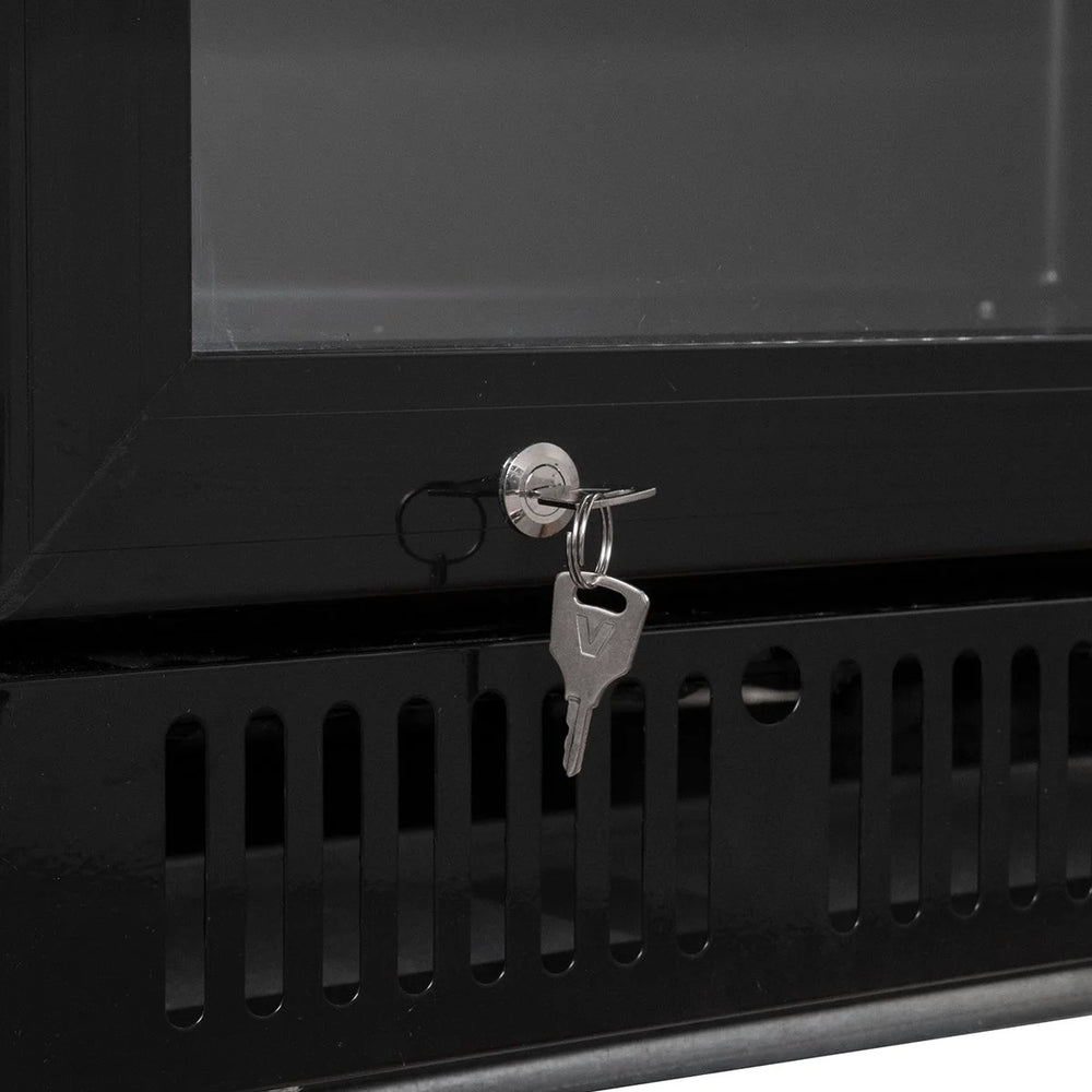 Der schwarze Getränkekühlschrank mit Umluftkühlung und Schloss ist ein zuverlässiger Partner für Ihre Verkaufs-Kühlung. Der Gewerbe Kühlschrank mit Glastür begeistert durch eine hochwertige Verarbeitung und garantiert deshalb eine lange Funktionsdauer auch bei hoher Beanspruchung. Die horizontale Beleuchtung unterstützt eine Präsentation der Produkte auf den 5 mitgelieferten Rosten.
