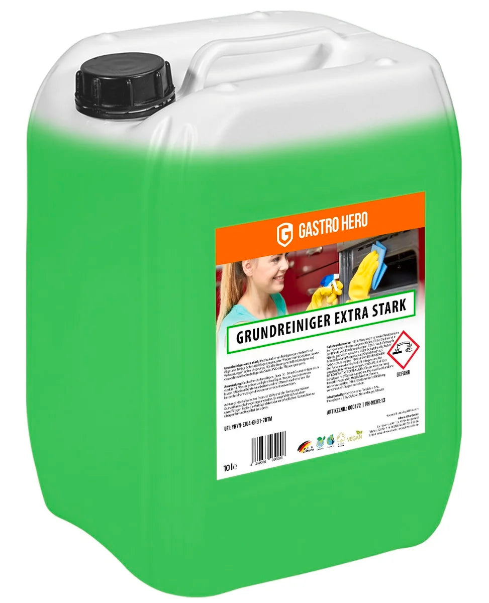- Grundreiniger extra stark entfernt zuverlässig ölige und fettige Schmutzablagerungen sowie Verkrustungen jeden Ursprungs