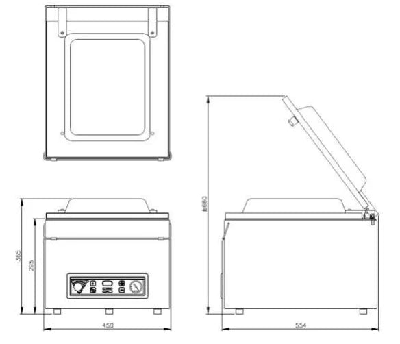 - BxTxH: 450 x 554 x 365 mm