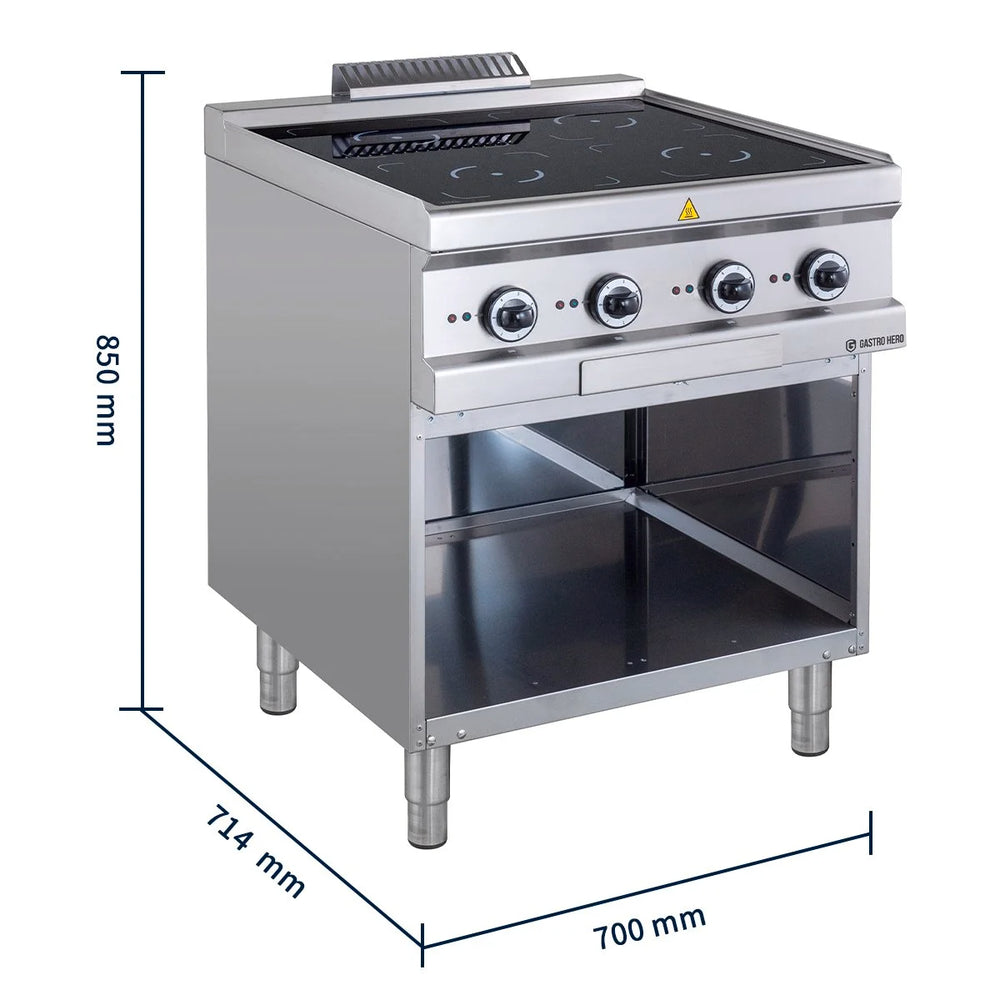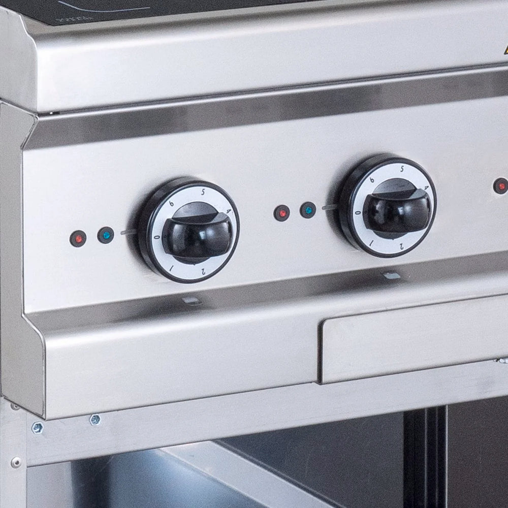 - Völlig flache und glatte Induktions-Oberfläche mit offenem Unterbau