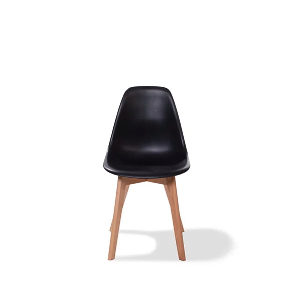 Feros Keeve Stapelstuhl schwarz ohne Armlehne, Birkenholzgestell und Kunststoffsitzfläche, 470 x 530 x 830 mm