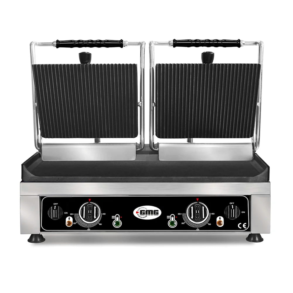 - oben gerillter und unten glatter Grillbereich aus Gusseisen