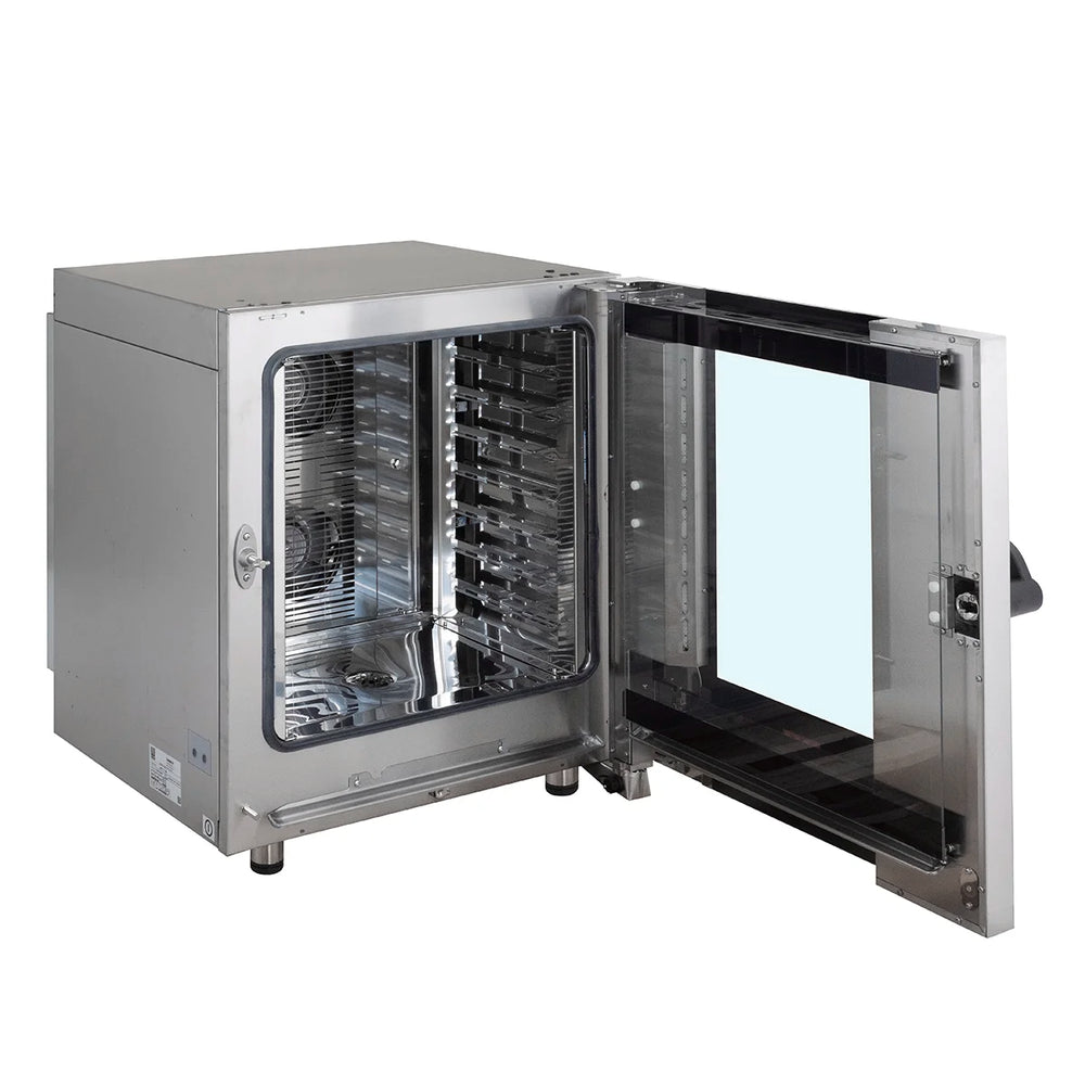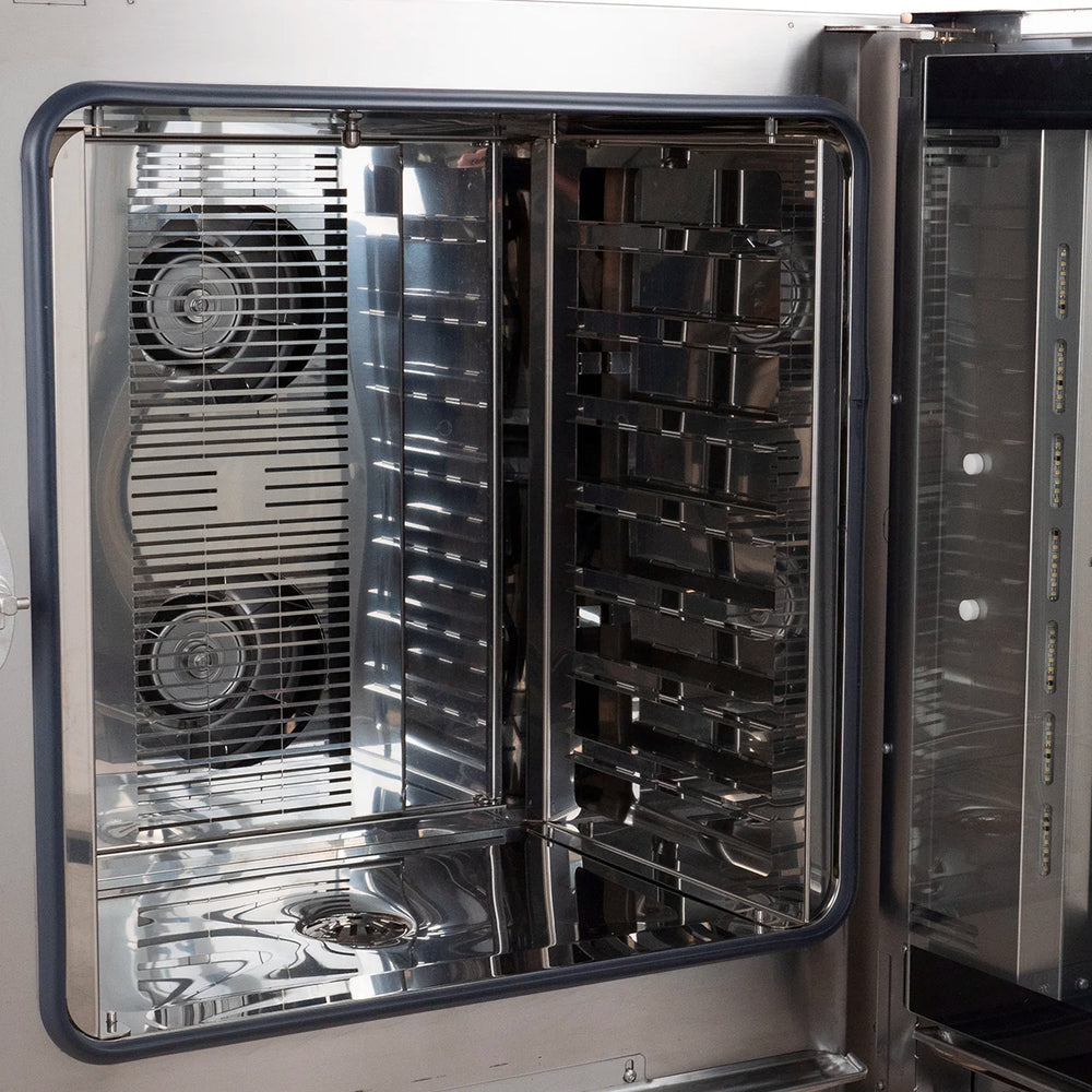 Die hochwertigen Kombi-Öfen von Tecnoeka überzeugen durch ihr solides und erlesenes Design mit vollendeter Technologie. Die Bedienung ist einfach und benutzefreundlich Dank einem praktischen Bedienfeld und der Möglichkeit bis zu 100 Rezepte abzuspeichern. Der Ofen besitzt die patentierten Systeme Airflowlogic und Humilogic von Tecnoeka.