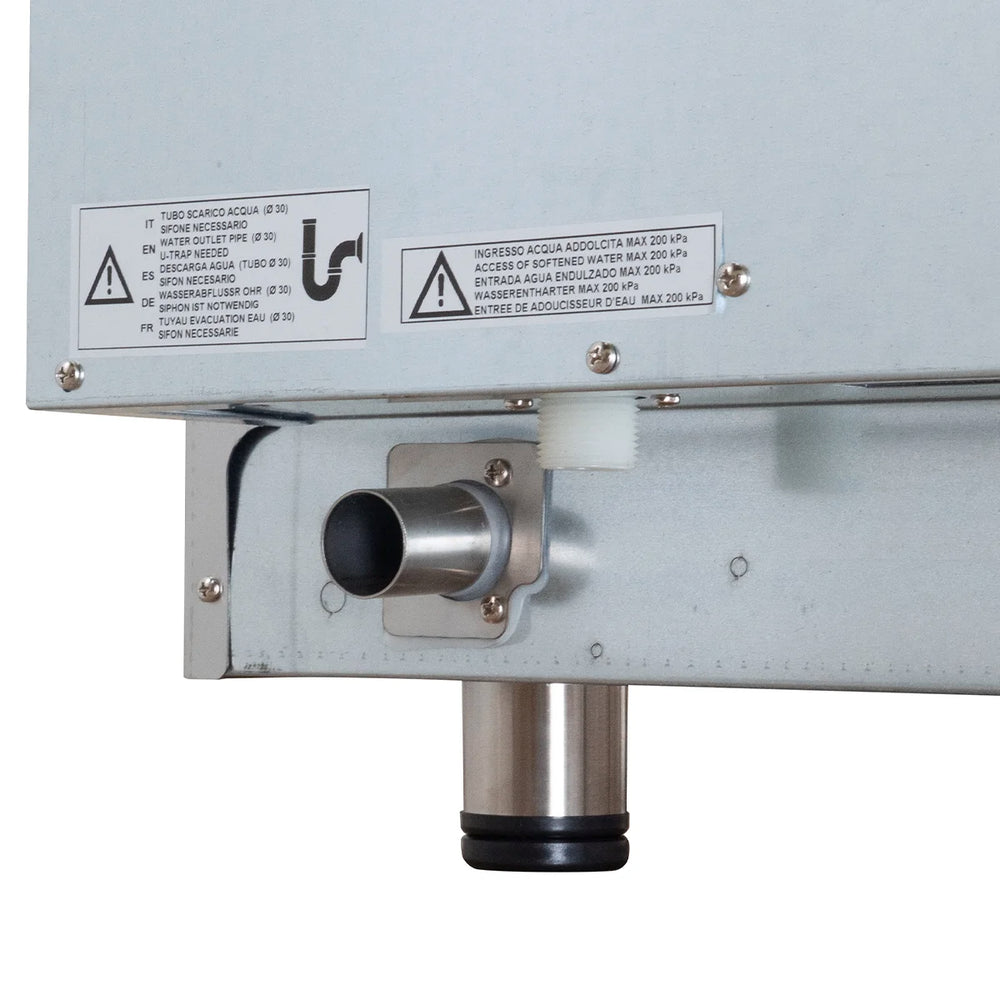 - Geräte mit Festwasseranschluss müssen, mit einer geeigneten Wasseraufbereitung, von einem Fachmann installiert und in Betrieb genommen werden.