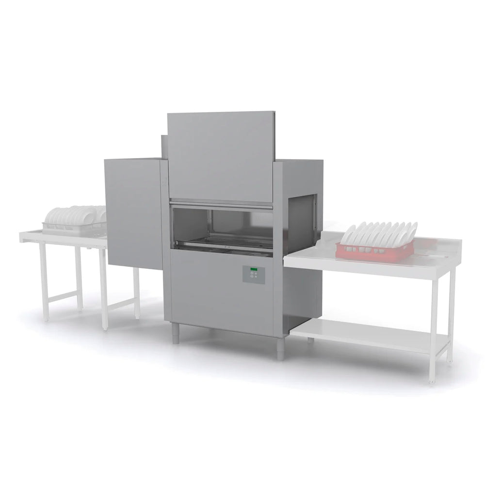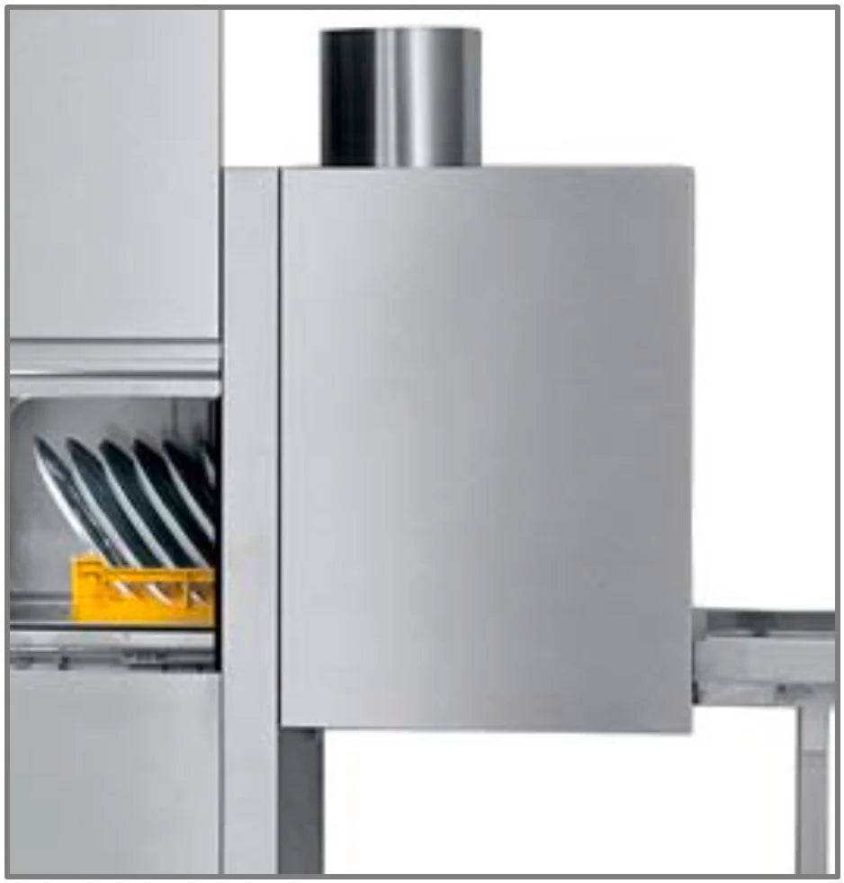 Diese Modellausführung ist zusätzlich mit einer Trockeneinheit ausgestattet. Sie wird einfach an das Ende der Maschine angebracht und angeschlossen. Direkt nach dem Spülprogramm wird das Geschirr mit einem Gebläse schonend und energiesparend getrocknet und kann direkt wieder verwendet werden ohne weiteres Abtrocknen.