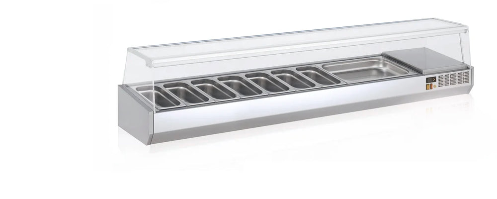 Mit den Kühlaufsätze der Premium-Serie bietet GastroHero Ihnen ein Qualitätsprodukt aus europäischer Herstellung zu einem exzellenten Produktpreis. Die Kühlaufsätze eignen sich hervorragend für die Warenpräsentation im Gästebereich um Lebensmittel und vorbereitete Speisen frisch und griffbereit zu halten. Mit dem modernen Design, der hohen Produktqualität und einmaligen Funktionalität überzeugen die Kühlaufsetzte in jeder Gastronomie-Küche.