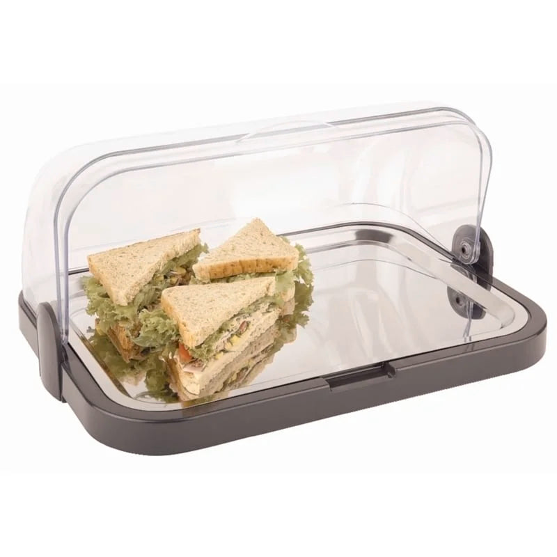 18/10 Edehlstahlplatte mit Rolldeckel und Kühlelementen in der Basis für langanhaltende Frische.