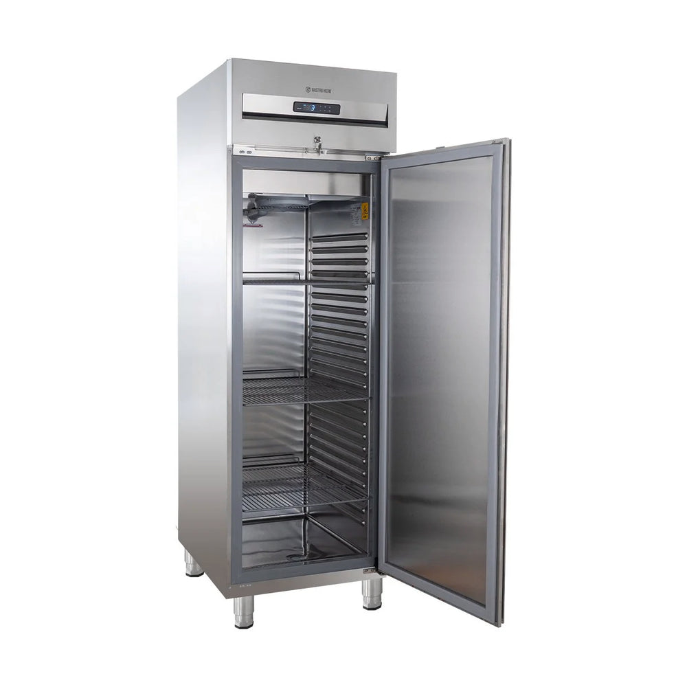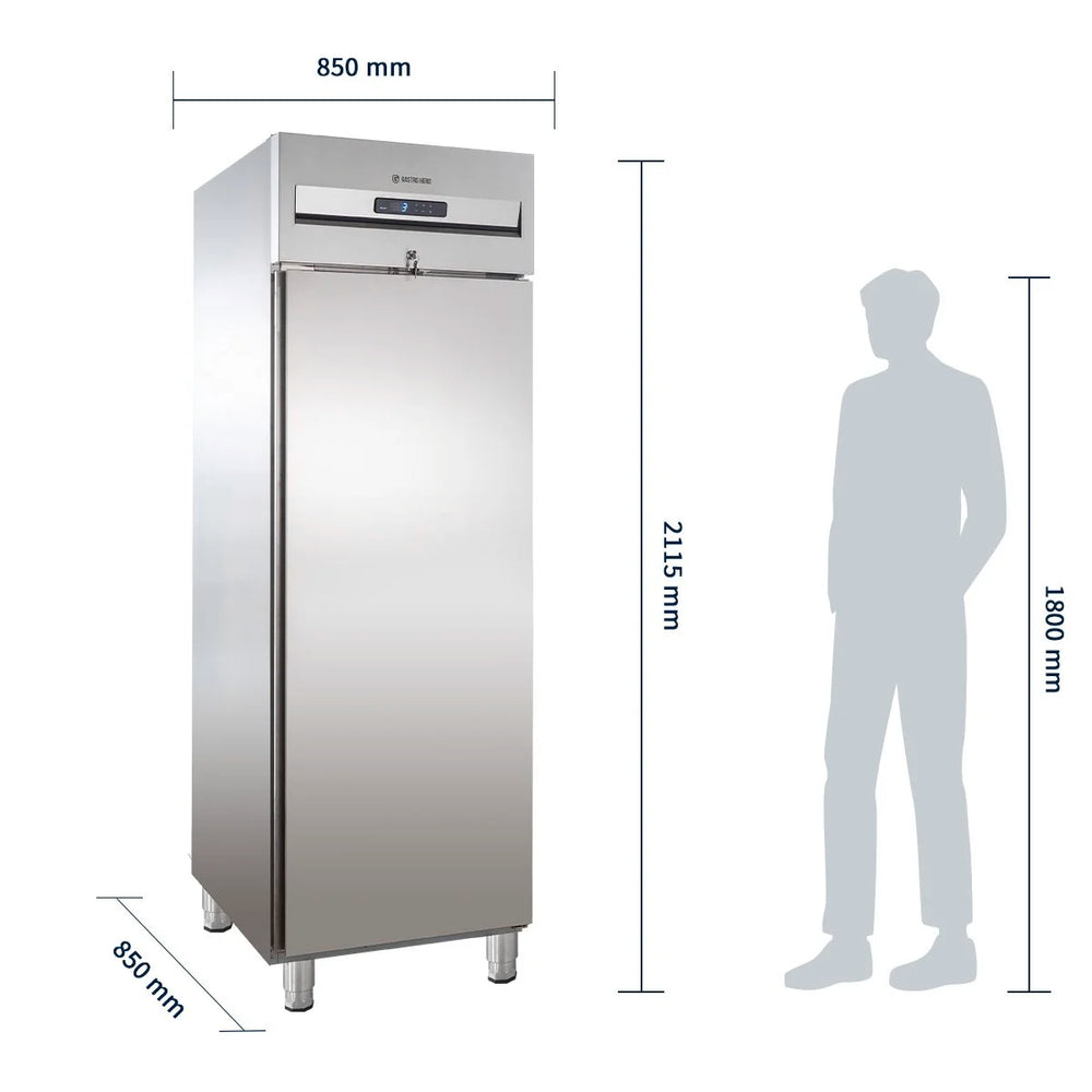 Der Kühlschrank PROFI 1700 GN 2/1 wird aus Edelstahl hergestellt und überzeugt besonders durch seine hohe Produktqualität und die besondere Langlebigkeit. Die einmalige Funktionalität und das ansprechende, neue und moderne Produktdesign stechen besonders heraus. Mit dem neuen, digitalen Thermostat wird häufiges Anspringen des Aggregats vermieden, sodass dieses Produkt besonders umweltschonend und ernergiesparsam arbeitet. Wenn die zu kühlenden Produkte die vorgeschriebene Temperatur erreicht haben, wird der Energeiverbrauch automatisch gesenkt für die weitere Kühlung. Dies schont nicht nur die Umwelt, sondern auch ihren Geldbeutel.