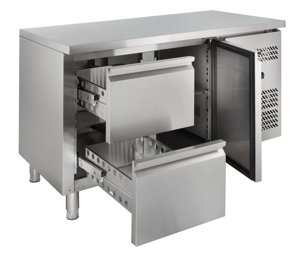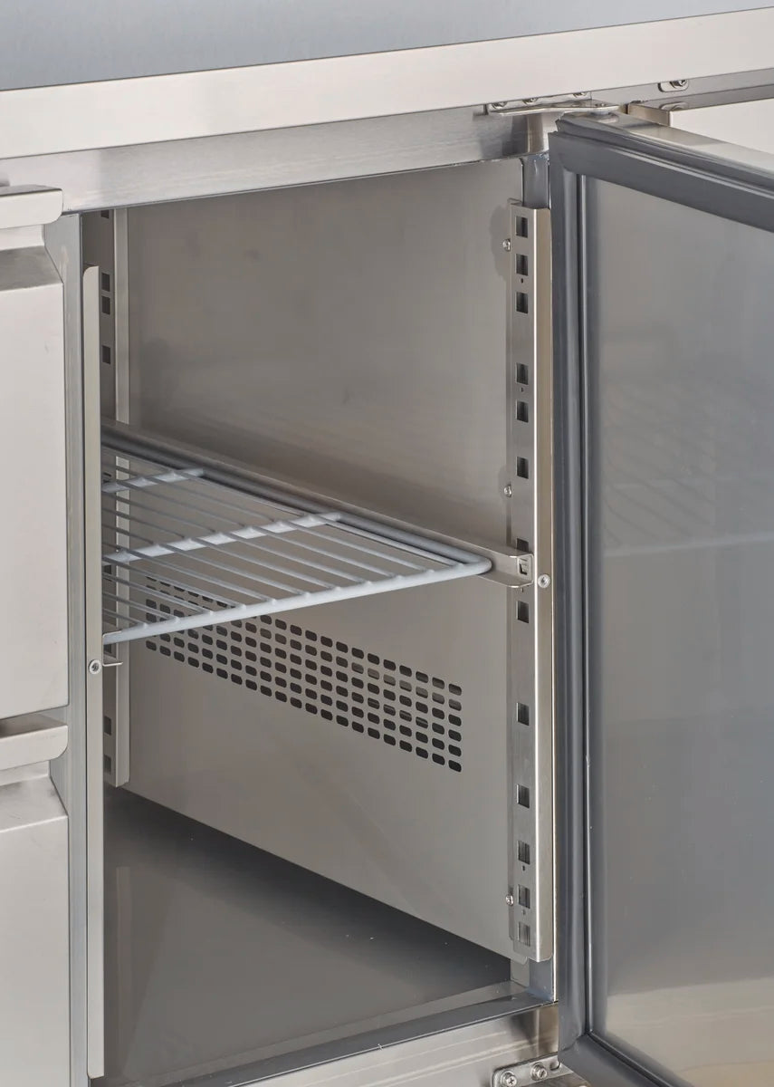 Unsere Kühltische der ECO-Serie überzeugen durch modernes Design, hohe Funktionalität und eine besonders robuste Bauweise. Durch den idealen Temperaturbereich von -2°C bis +8°C können Sie Ihre Lebensmittel optimal gekühlt lagern. Das elektronische Thermostat mit LED-Anzeige sorgt für eine einfache Bedienung und gleichzeitig für eine individuelle und präzise Kühltemperatur.