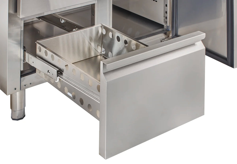 - Arbeitsplatte, Innenraum, Tür, Schubladen und Seitenteile aus hochwertigem Edelstahl
