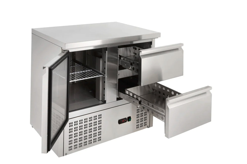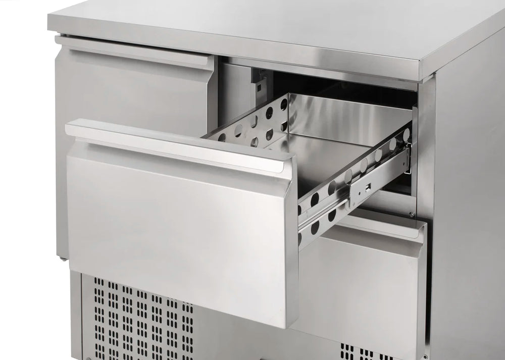 Unsere Kühltische der ECO-Serie überzeugen mit einem modernen Design, hoher Funktionalität und einer besonders robusten Bauweise. Dank des idealen Temperaturbereichs von +2°C bis +8°C können Sie Ihre Lebensmittel optimal gekühlt lagern. Das elektronische Thermostat mit LED Display erleichtert Ihnen die Bedienung und sorgt zugleich für eine individulle sowie exakte Kühltemperatur.