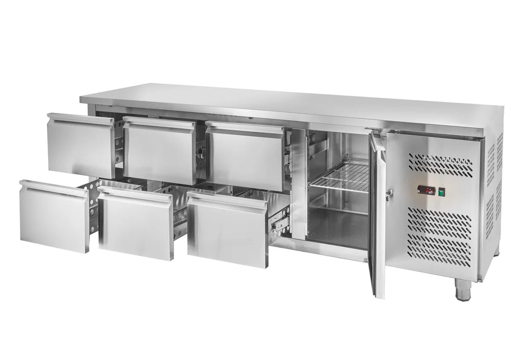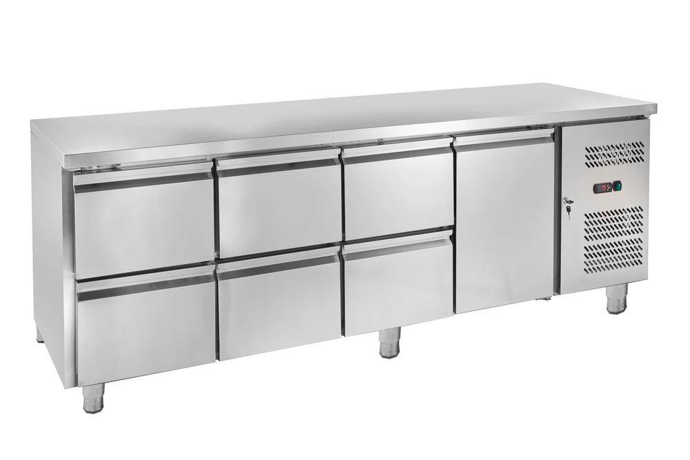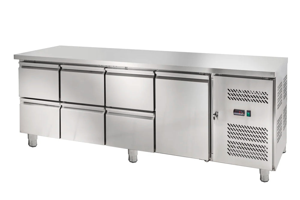 Unsere Kühltische der ECO-Serie überzeugen durch modernes Design, hohe Funktionalität und eine besonders robuste Bauweise. Durch den idealen Temperaturbereich von -2°C bis +8°C können Sie Ihre Lebensmittel optimal gekühlt lagern. Das elektronische Thermostat mit LED-Display erleichtert Ihnen die Bedienung und sorgt gleichzeitig für eine individuelle und exakte Kühltemperatur.
