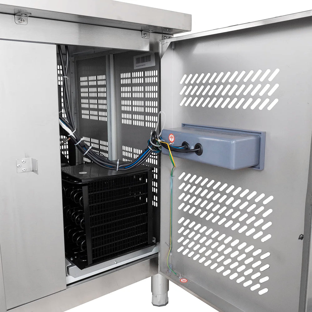 Modernes Design, hohe Funktionalität und eine besonders robuste Bauweise zeichnen unsere Kühltische der ECO-Serie aus. Der ideale Temperaturbereich reicht von -2°C bis +8°C. So können Sie Ihre Lebensmittel optimal gekühlt lagern. Das elektronische Thermostat mit LED-Display lässt sich einfach bedienen und sorgt für eine individuelle und exakte Kühltemperatur.