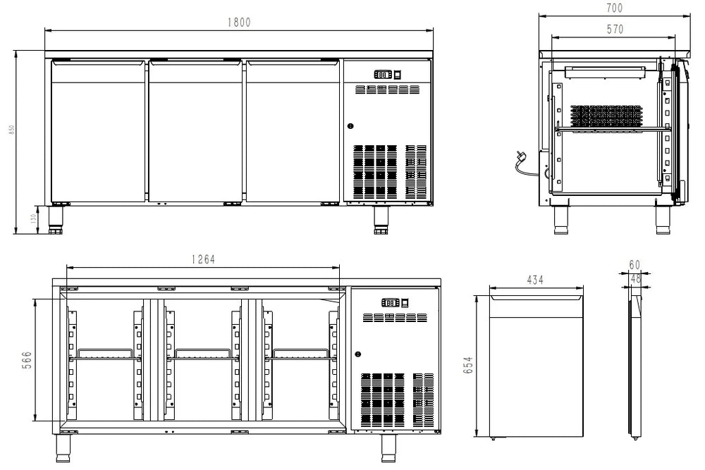 - Arbeitsplatte, Innenraum, Türen und Seitenteile aus hochwertigem Edelstahl