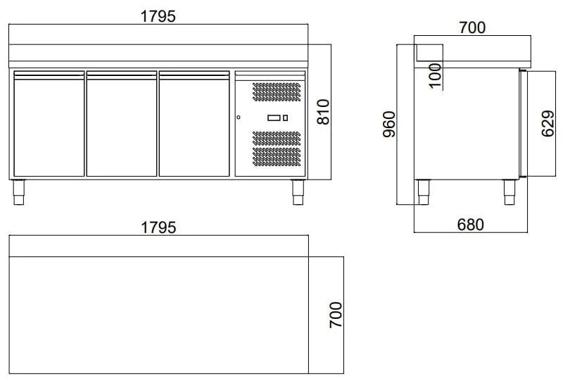 - Arbeitsplatte, Innenraum, Türen und Seitenteile aus hochwertigem Edelstahl