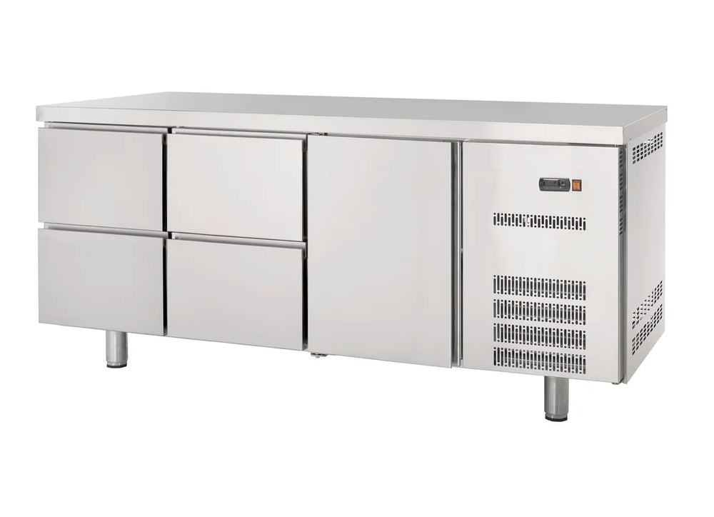 - Mit 1 selbstschließenden Tür und 4 Schubladen aus hochwertigem Chromstahl