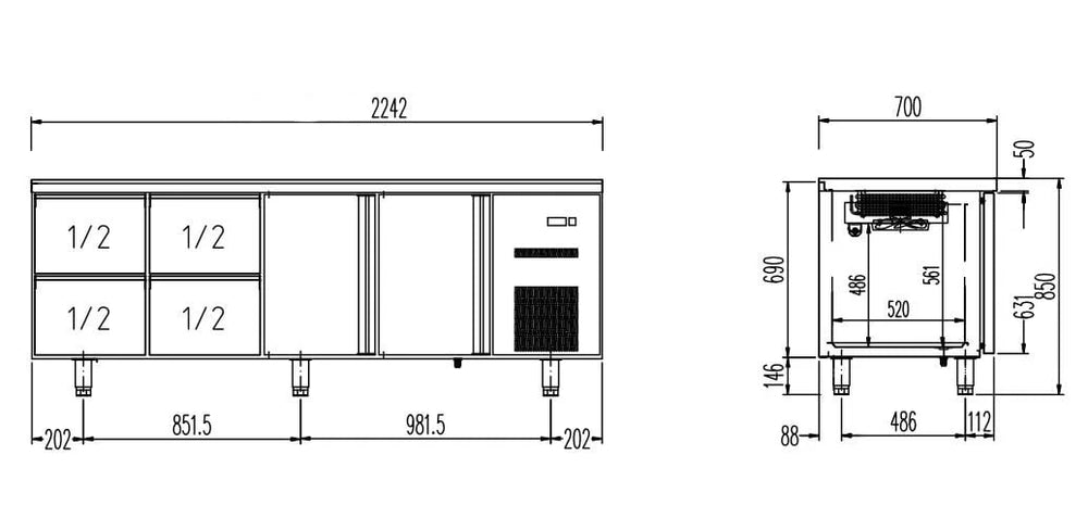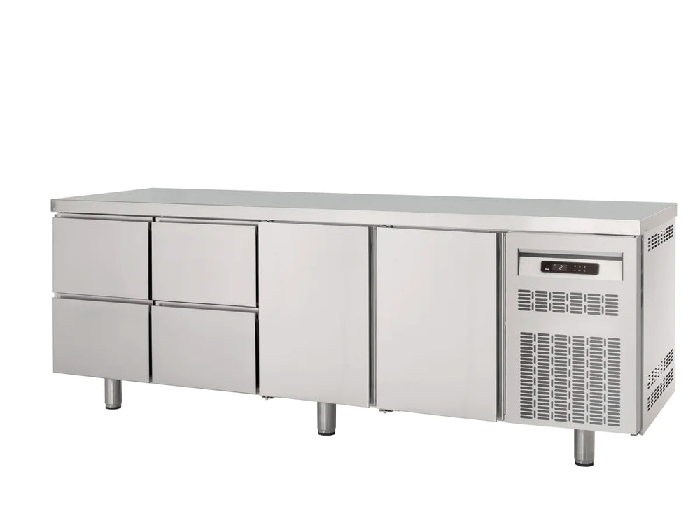 Unsere Kühltische aus der PROFI-Serie überzeugen mit ihrem neuen, modernen Design, hoher Funktionalität, Langlebigkeit sowie einer hochwertigen Verarbeitung. Dank des idealen Temperaturbereichs von -2°C bis +8°C können Sie Ihre Lebensmittel optimal gekühlt lagern. Das hier verwendete Temperatur-Messsystem vemeidet zu häuiges Anspringen des Aggregats und arbeitet daher besonders energiesparsam und umweltschonend. Sie können die Tempersatur ganz einfach mit dem neuen, digitalen Thermostat überwachen. Sobald die Produkte im Inneren die gewünschte Temperatur erreicht haben, sinkt der Energieverbrauch beträchtlich. Unsere PROFI-Kühltische bieten eine perfekte Mischung zwischen Arbeitsfläche und Lagerfläche.