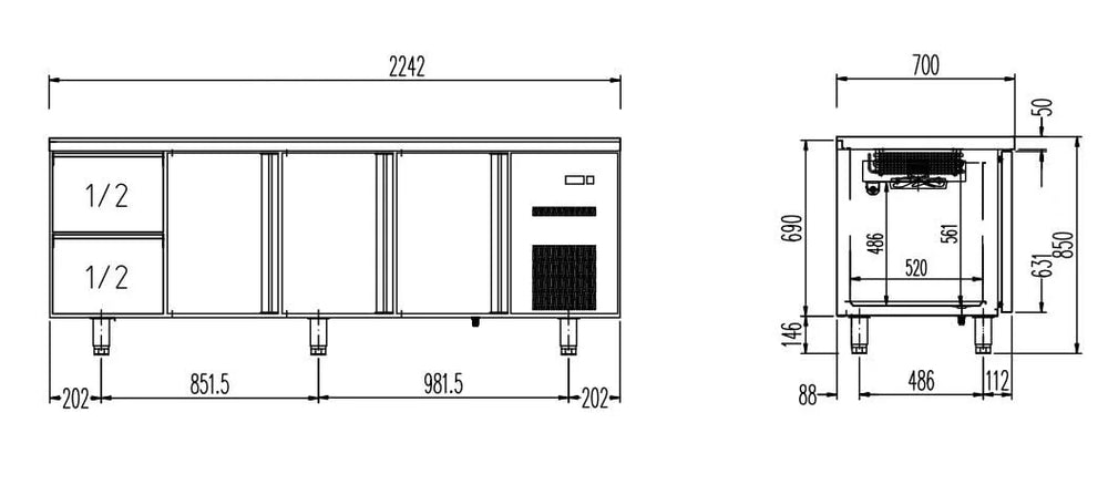 Unsere Kühltische aus der PROFI-Serie überzeugen mit ihrem neuen, modernen Design, hoher Funktionalität, Langlebigkeit sowie einer hochwertigen Verarbeitung. Dank des idealen Temperaturbereichs von -2°C bis +8°C können Sie Ihre Lebensmittel optimal gekühlt lagern. Das hier verwendete Temperatur-Messsystem vemeidet zu häuiges Anspringen des Aggregats und arbeitet daher besonders energiesparsam und umweltschonend. Sie können die Tempersatur ganz einfach mit dem neuen, digitalen Thermostat überwachen. Sobald die Produkte im Inneren die gewünschte Temperatur erreicht haben, sinkt der Energieverbrauch beträchtlich. Unsere PROFI-Kühltische bieten eine perfekte Mischung zwischen Arbeitsfläche und Lagerfläche.