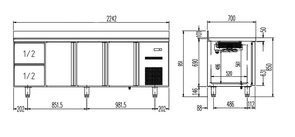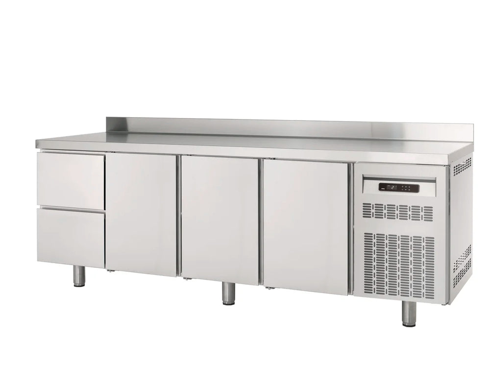 Unsere Kühltische aus der PROFI-Serie überzeugen mit ihrem neuen, modernen Design, hoher Funktionalität, Langlebigkeit sowie einer hochwertigen Verarbeitung. Dank des idealen Temperaturbereichs von -2°C bis +8°C können Sie Ihre Lebensmittel optimal gekühlt lagern. Das hier verwendete Temperatur-Messsystem vemeidet zu häuiges Anspringen des Aggregats und arbeitet daher besonders energiesparsam und umweltschonend. Sie können die Tempersatur ganz einfach mit dem neuen, digitalen Thermostat überwachen. Sobald die Produkte im Inneren die gewünschte Temperatur erreicht haben, sinkt der Energieverbrauch beträchtlich. Unsere PROFI-Kühltische bieten eine perfekte Mischung zwischen Arbeitsfläche und Lagerfläche.