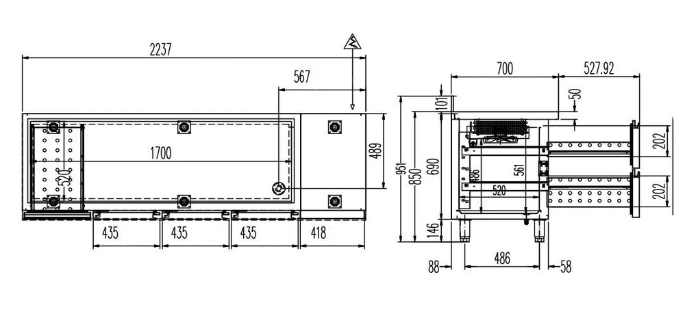 - Produktmaße (B x T x H): 2245 x 700 x 850 mm