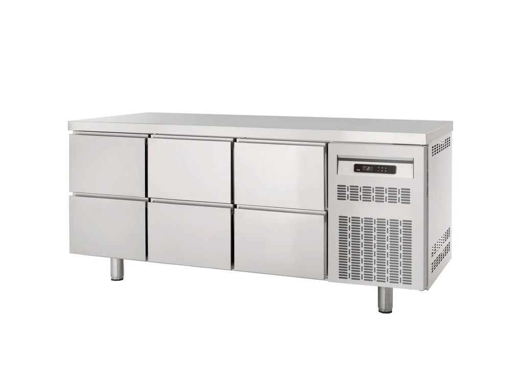 Unsere Kühltische aus der PROFI-Serie überzeugen mit ihrem neuen, modernen Design, hoher Funktionalität, Langlebigkeit sowie einer hochwertigen Verarbeitung. Dank des idealen Temperaturbereichs von -2°C bis +8°C können Sie Ihre Lebensmittel optimal gekühlt lagern. Das hier verwendete Temperatur-Messsystem vemeidet zu häuiges Anspringen des Aggregats und arbeitet daher besonders energiesparsam und umweltschonend. Sie können die Tempersatur ganz einfach mit dem neuen, digitalen Thermostat überwachen. Sobald die Produkte im Inneren die gewünschte Temperatur erreicht haben, sinkt der Energieverbrauch beträchtlich. Unsere PROFI-Kühltische bieten eine perfekte Mischung zwischen Arbeitsfläche und Lagerfläche.