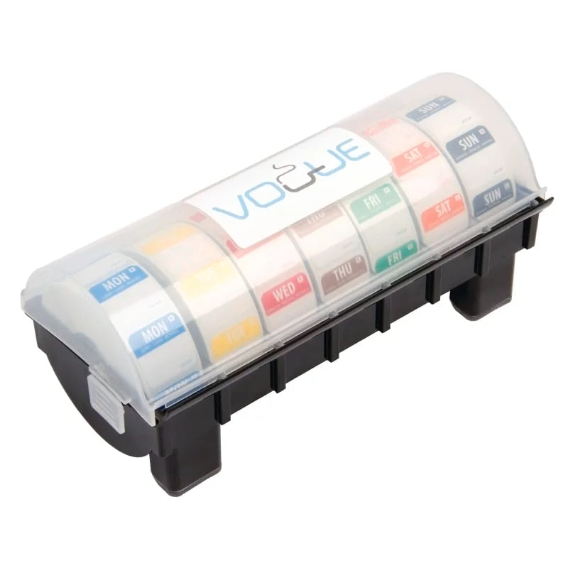 Dieser Kunststoffspender ist das ideale Starterkit und wird bereits geliefert mit 7 Rollen Etikettenaufkleber als Wochenset (Mo-So) mit einer Breite von 2,4 cm. Die Rollen stehen sortiert bereit um ihr HACCP-Konzept umzusetzen. Die Aufkleber finden auf Lebensmittelbehältern Anwendung und sind in verschiedenen Ausführungen erhältlich.