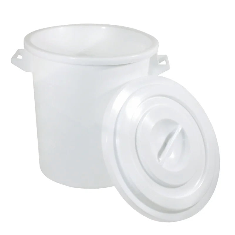 Hergestellt aus weißem, hochdichten Polyethylen eignet sich diese große Tonne hervorragend zum Lagern von Lebensmitteln