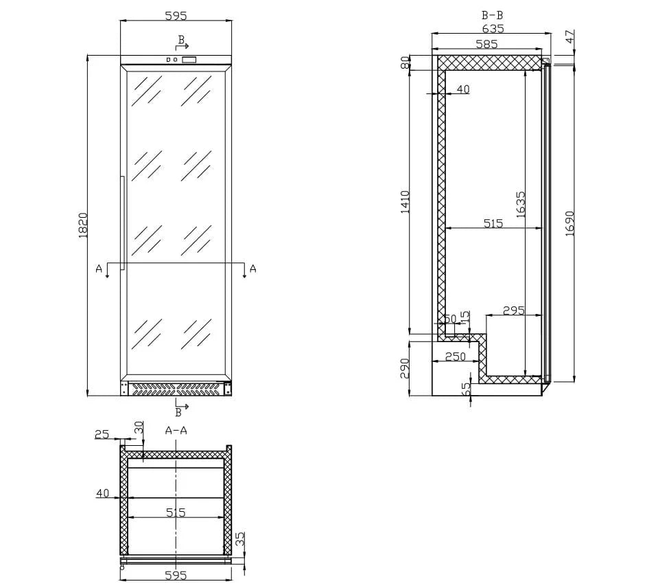 - Produktmaße (B x T x H): 595 x 635 x 1840 mm