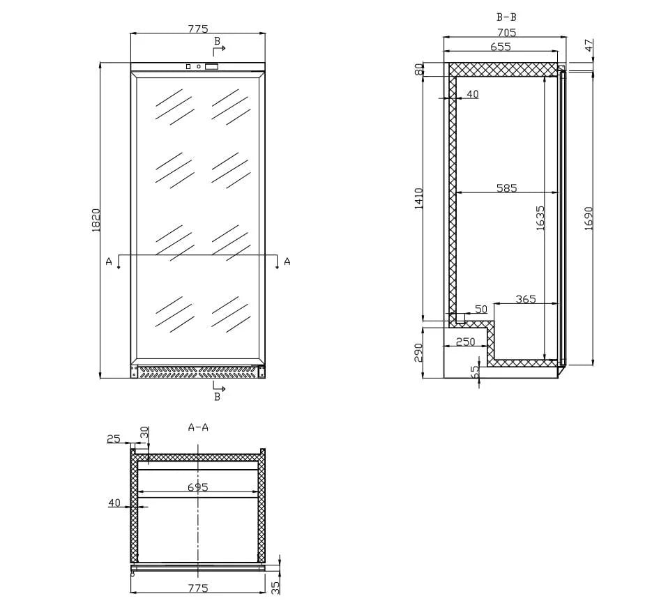 - Produktmaße (B x T x H): 775 x 720 x 1855 mm