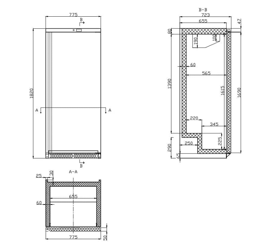 - Produktmaße (B x T x H): 775 x 723 x 1840 mm